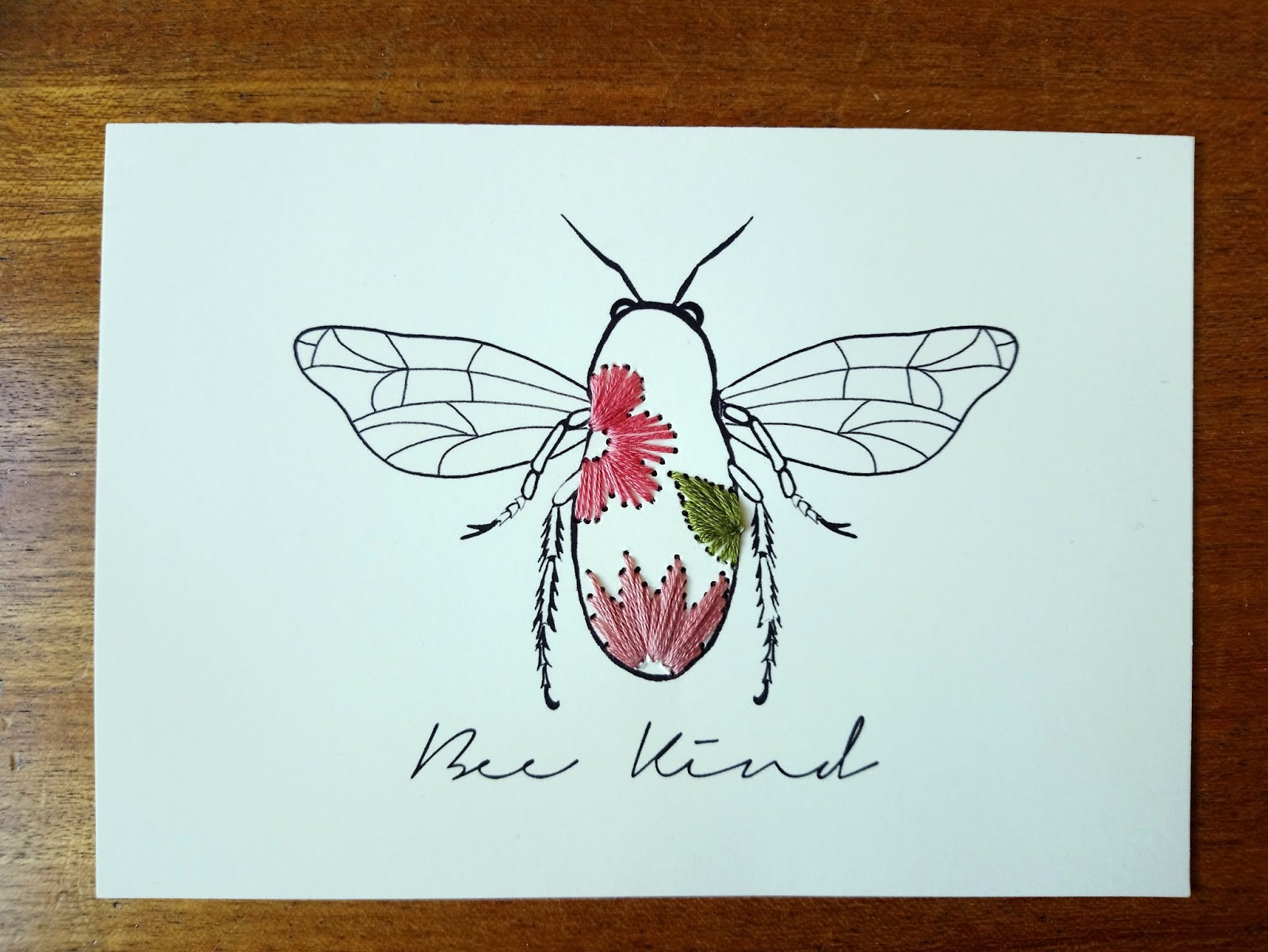 The printed background paper is cut with a stitched edged die and the stitch effect highlighted with a black pen. The coloured image and matt are cut with rectangle dies.